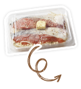 スーパーマーケットなどで使われている電子レンジ対応の「レンジパック」を、