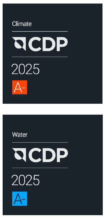 CDPは、英国を拠点とする国際的な非営利団体であり、世界の上場企業を対象に気候変動、森林資源、水資源への取り組みを調査し、その情報を開示・評価しています。スコアは世界に公表され、ESG投資の判断材料の一つとなっています。当社は、「気候変動」および「水セキュリティ」に関する調査において最高評価に相次ぐ「A-(リーダーシップレベル)」に選定されました。